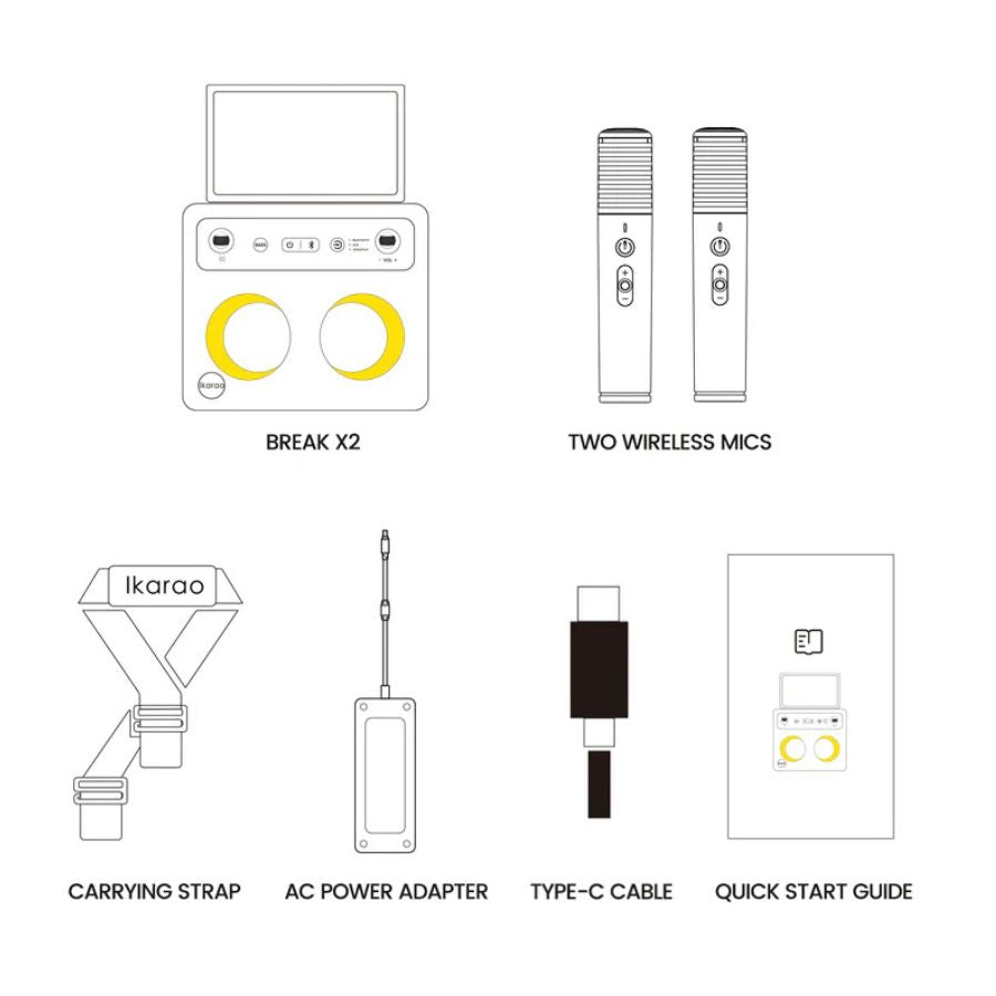 Ja, das Ikarao Break X2 verfügt über einen integrierten 10,1-Zoll-HD-Touchscreen. Dieser Bildschirm ist für die einfache Navigation durch Karaoke- und Musik-Apps wie Karafun und Spotify konzipiert. Es ist eine kompaktere Version im Vergleich zum Break X1, das einen größeren 13,3-Zoll-Bildschirm hat, aber es bietet immer noch große Funktionalität mit hochwertiger Audioausgabe und App-Integration für Karaoke-Auftritte