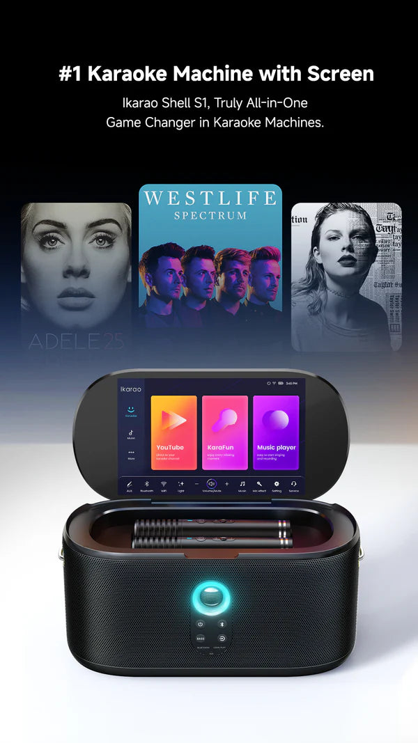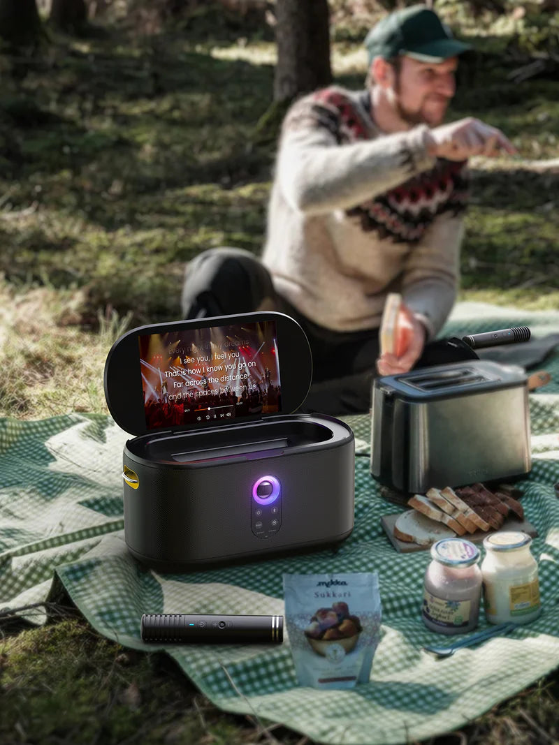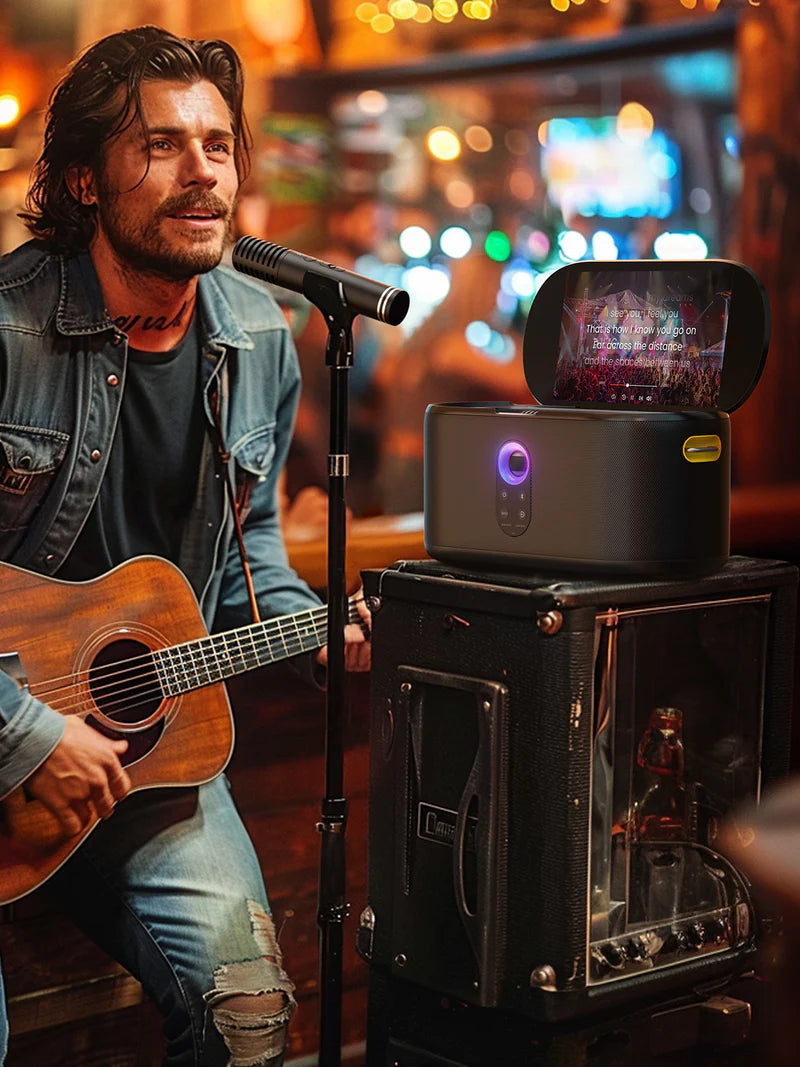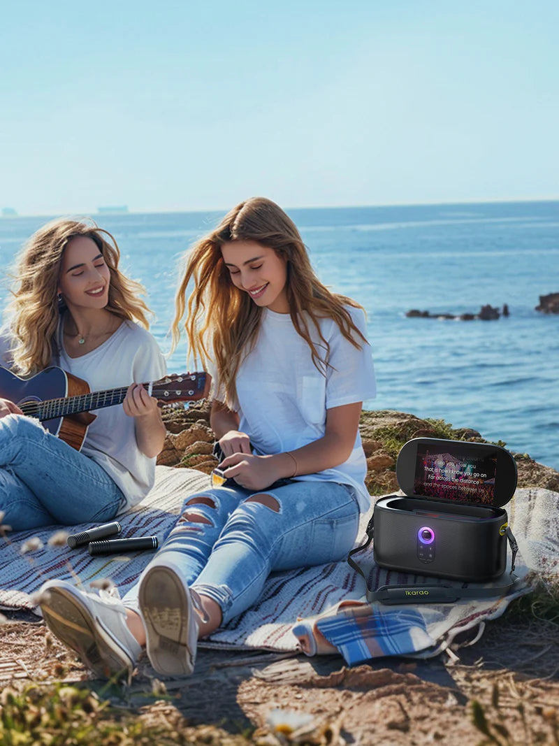 Ikarao S1 améliore vos soirées avec un son et une portabilité de haute qualité. L'écran tactile de 8 pouces permet à tout le monde de chanter et la batterie dure longtemps.