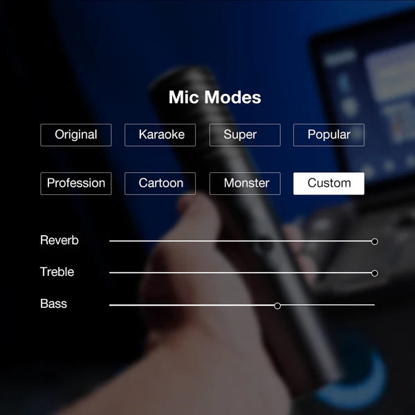 Chantez de tout votre cœur avec le microphone sans fil professionnel. Avec une portée de 10 mètres et une batterie qui dure pas moins de 15 heures, vous n'avez à vous soucier de rien. Ajoutez un peu plus de style avec les différents effets sonores et affinez le son exactement comme vous le souhaitez.